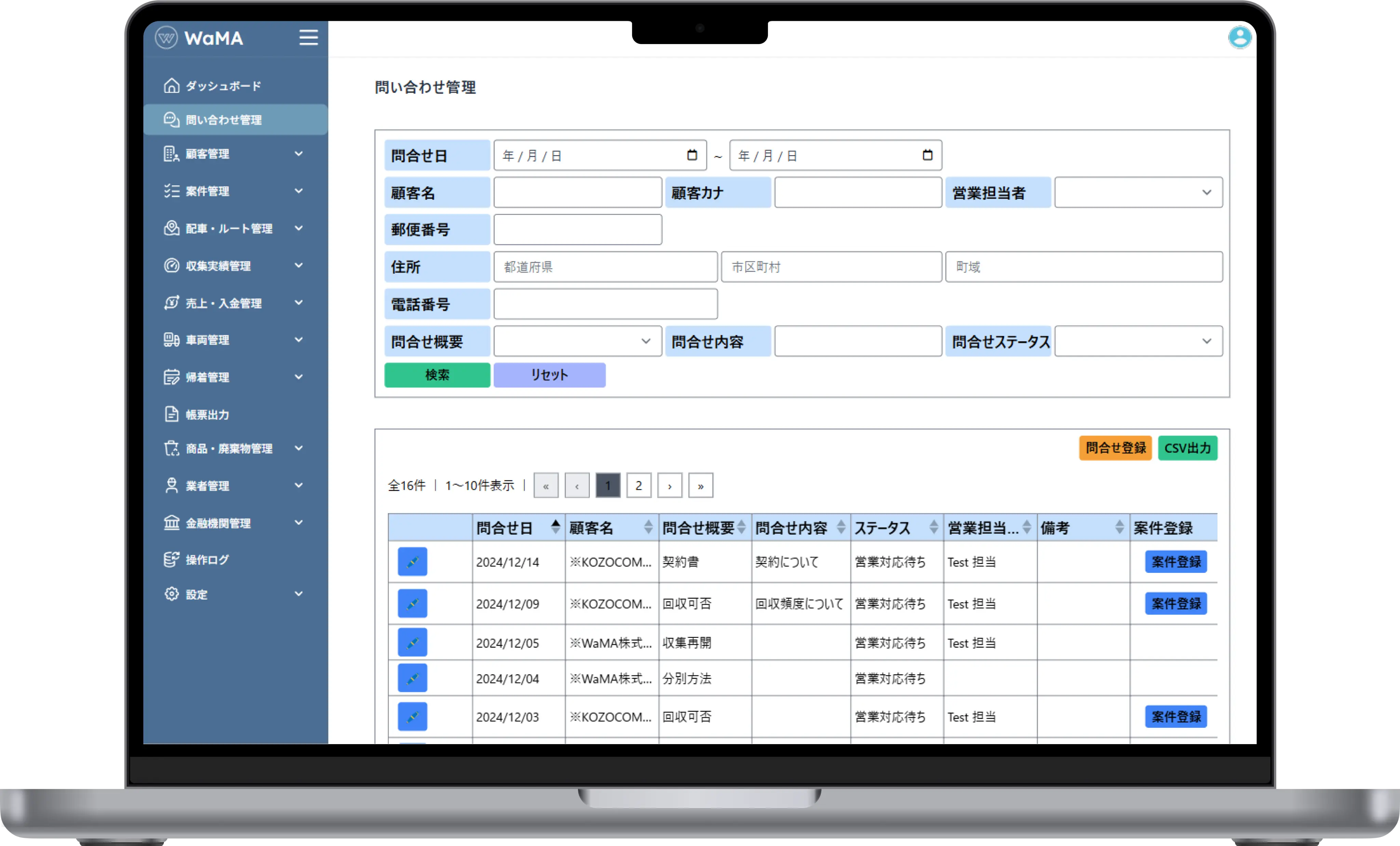 問い合わせから入金管理まで一元管理